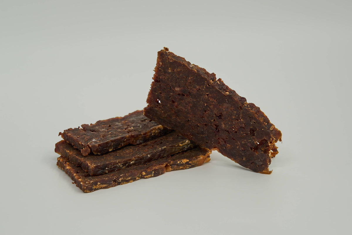 Cheeseburger Guaranteed Analysis & Calorie Content: Crude Protein - 37% Crude Fat - 26% Crude Fiber - 2% Moisture - 22% Calorie per strip = 60 kcal | 6 - 7 strips per 8oz package | 10 -12 strips per 16oz package All Saint Rocco's Treats have a 4-month shelf life.
