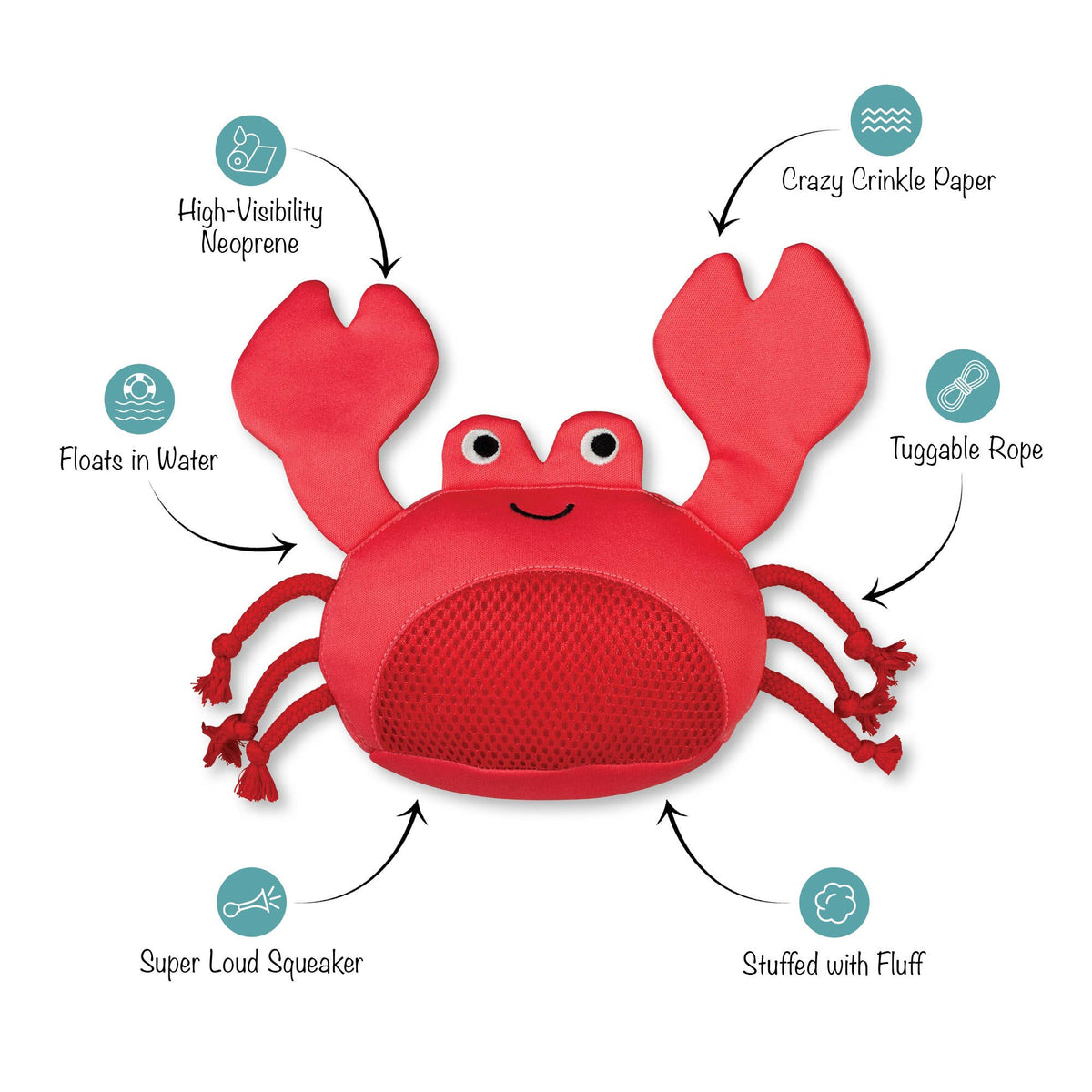 For pups that love to play in water! Meet "Claws," a floating dog toy from PetShop by Fringe Studio's Splash Mates collection. Featuring a super loud squeaker, crazy crinkle paper, tuggable rope, the ability to float, and high-visibility neoprene, this toy might make your dog a little shellfish. Perfect to take to the beach, pool, and lake!