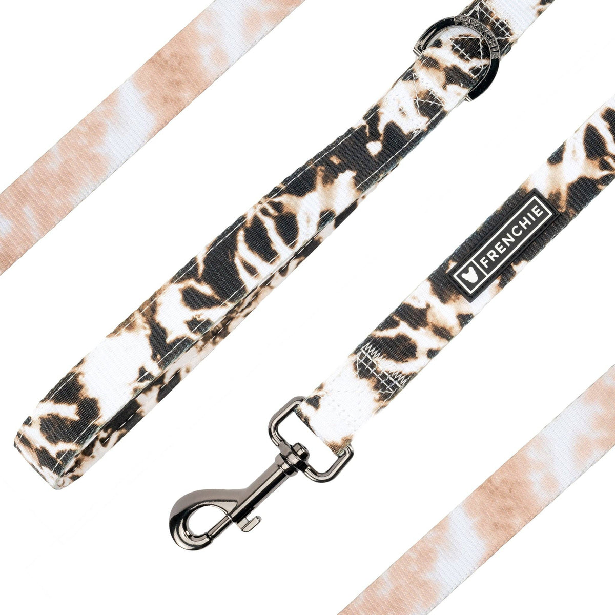 The Frenchie Comfort Leash - not your average leash. The Frenchie Comfort Leash combines your Frenchie's sense of style with incredible functionality and durability. Featuring a neoprene padded handle for a soft, comfortable grip, 1ft of extended length (1in. wide X 5ft. length), vibrant dual printed polyester webbing strap, and heavy duty black clip leash end. A perfect accompaniment for the Frenchie Harness!