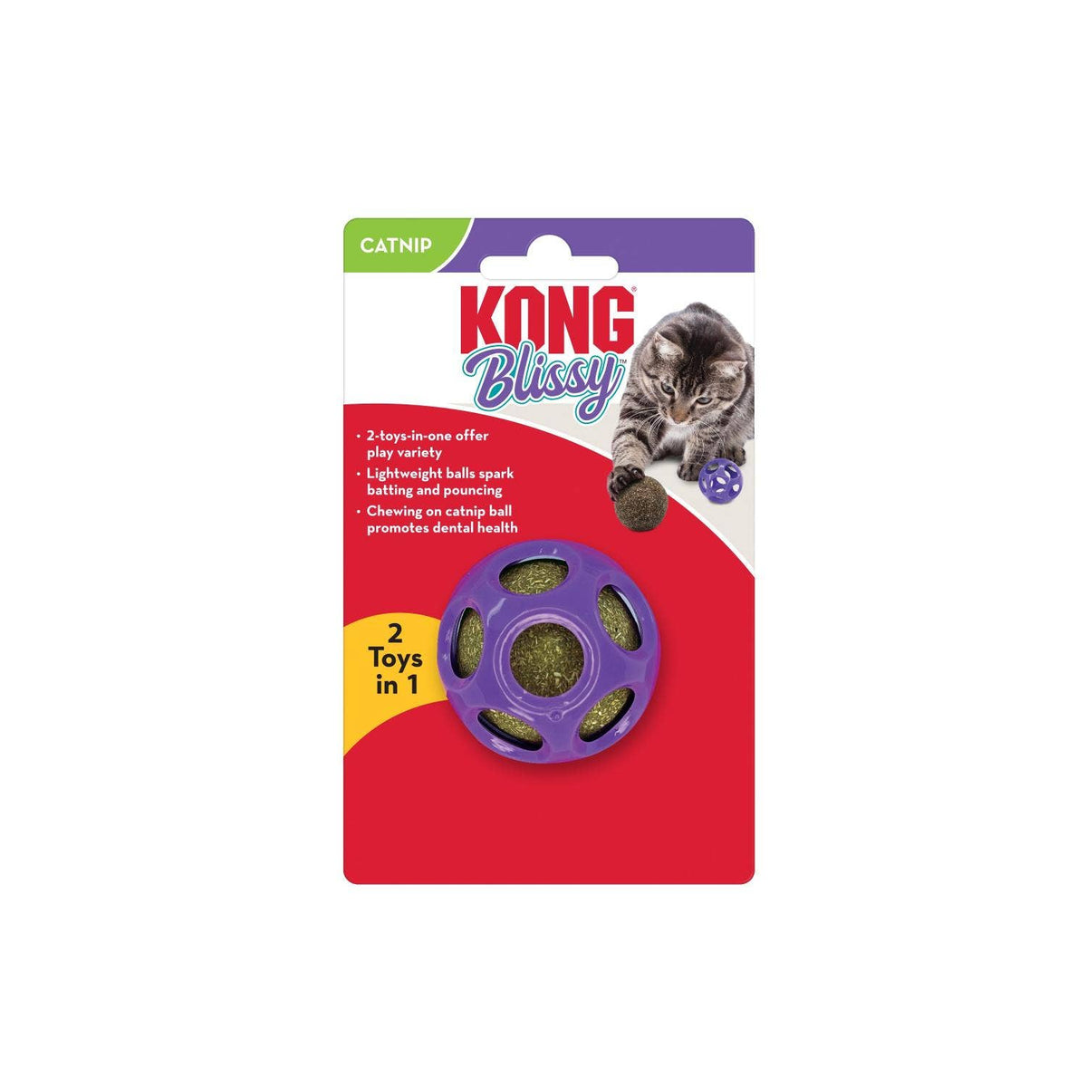 KONG Blissy Moon delivers double the fun with 2 different lightweight, rolling toys to satisfy hunting instincts. Purple ball’s intriguing shape invites batting, chasing and pouncing. Dense ball of potent KONG Premium North American Catnip prolongs play and chewing on it helps clean teeth and gums for multi-sensory delight.