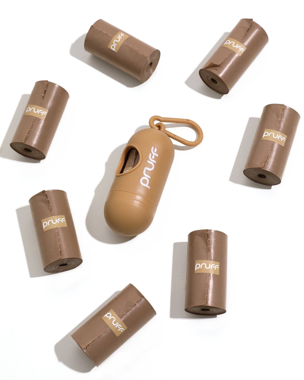 Get ready to clean up after your furry friend in a modern and minimalist way with our Pet Waste Bags. This kit comes with 8 rolls of 15 bags each, for a whopping total of 120 disposable neutral colored bags.