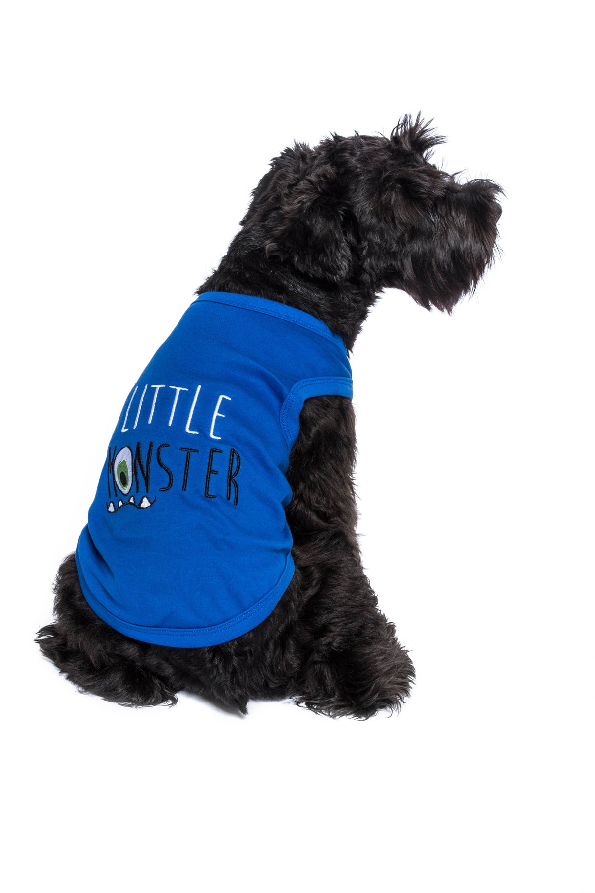 It's dog apparel with attitude! Our embroidered little monster dog shirt is made of a soft 100% cotton fabric. Excellent gift for dogs and dog lovers.