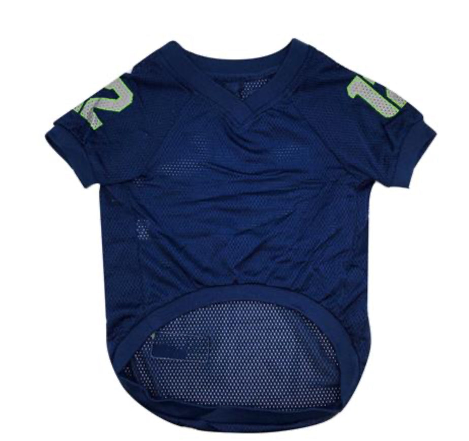 Dress your furry friend in team spirit with the NFL Official Pet Jersey. Made from high-quality polyester fabric, it features stretch panels for a comfortable fit and bold team colors and graphics. Easy to clean and put on, this jersey is the perfect way to show off your love for your team and your pet. (Go Team!) Two different styles available: mesh jersey with double zero or poly-satin with logo.