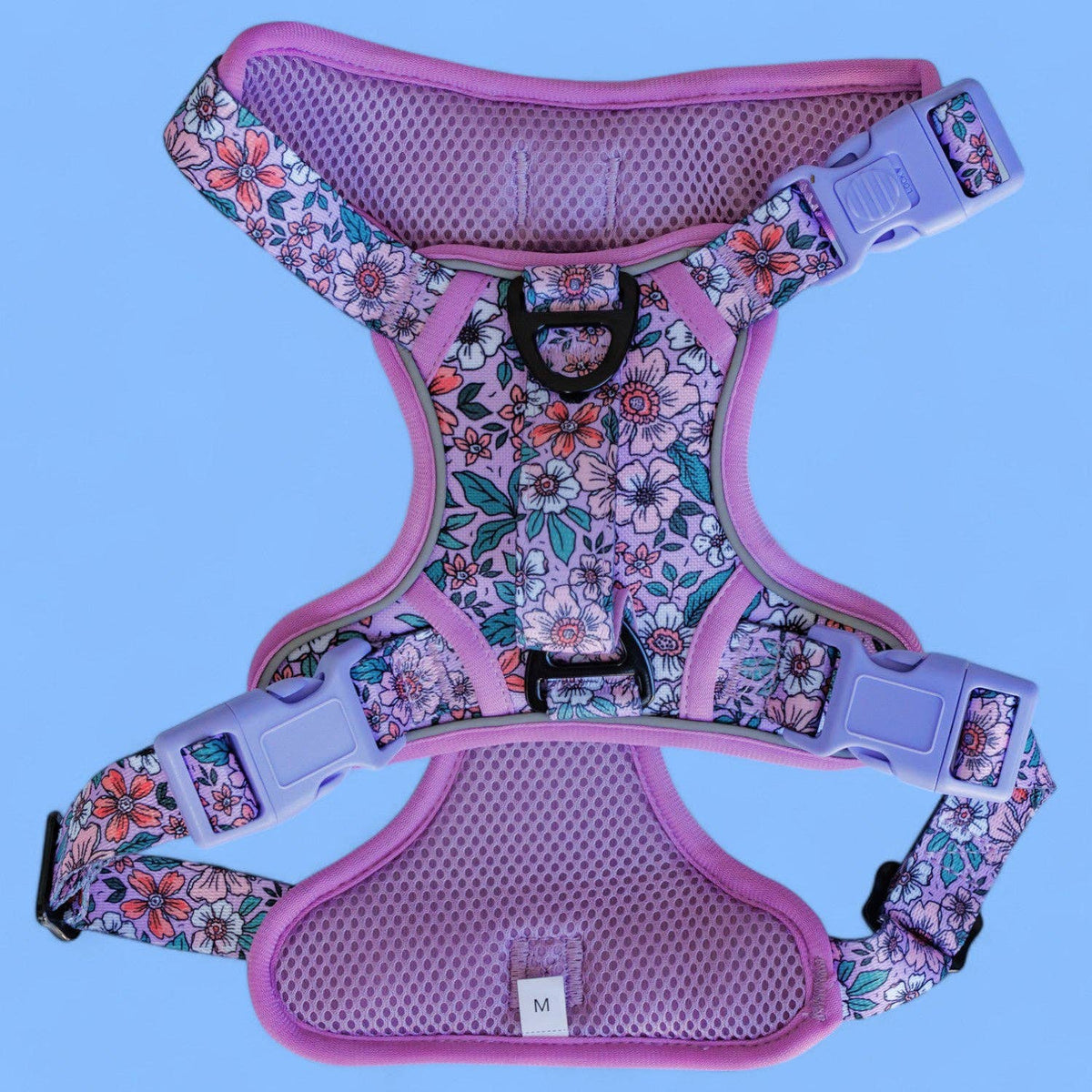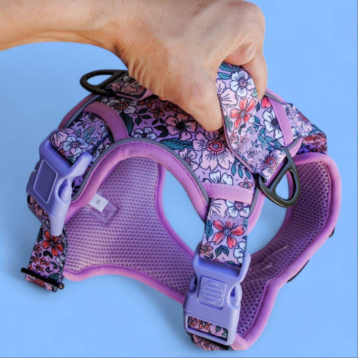 No Pull Dog Harness | Step in | Reflective | Heavy Duty | Easy Reach Handle | Lilac Floral