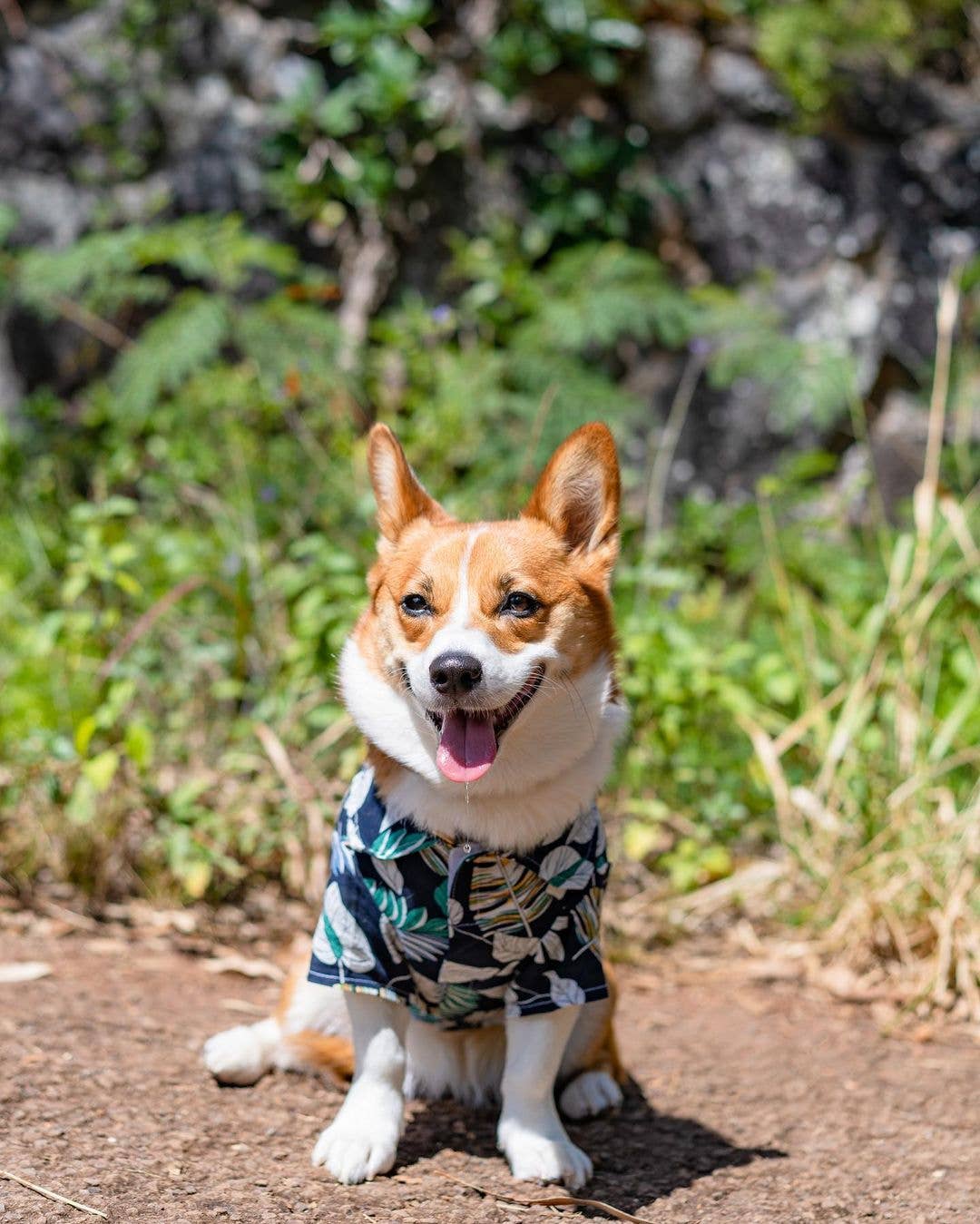 Get your pup summer-ready with the Palm Leaves Camp Shirt! This lightweight dog outfit features a tropical design, perfect for warm weather and vacations.