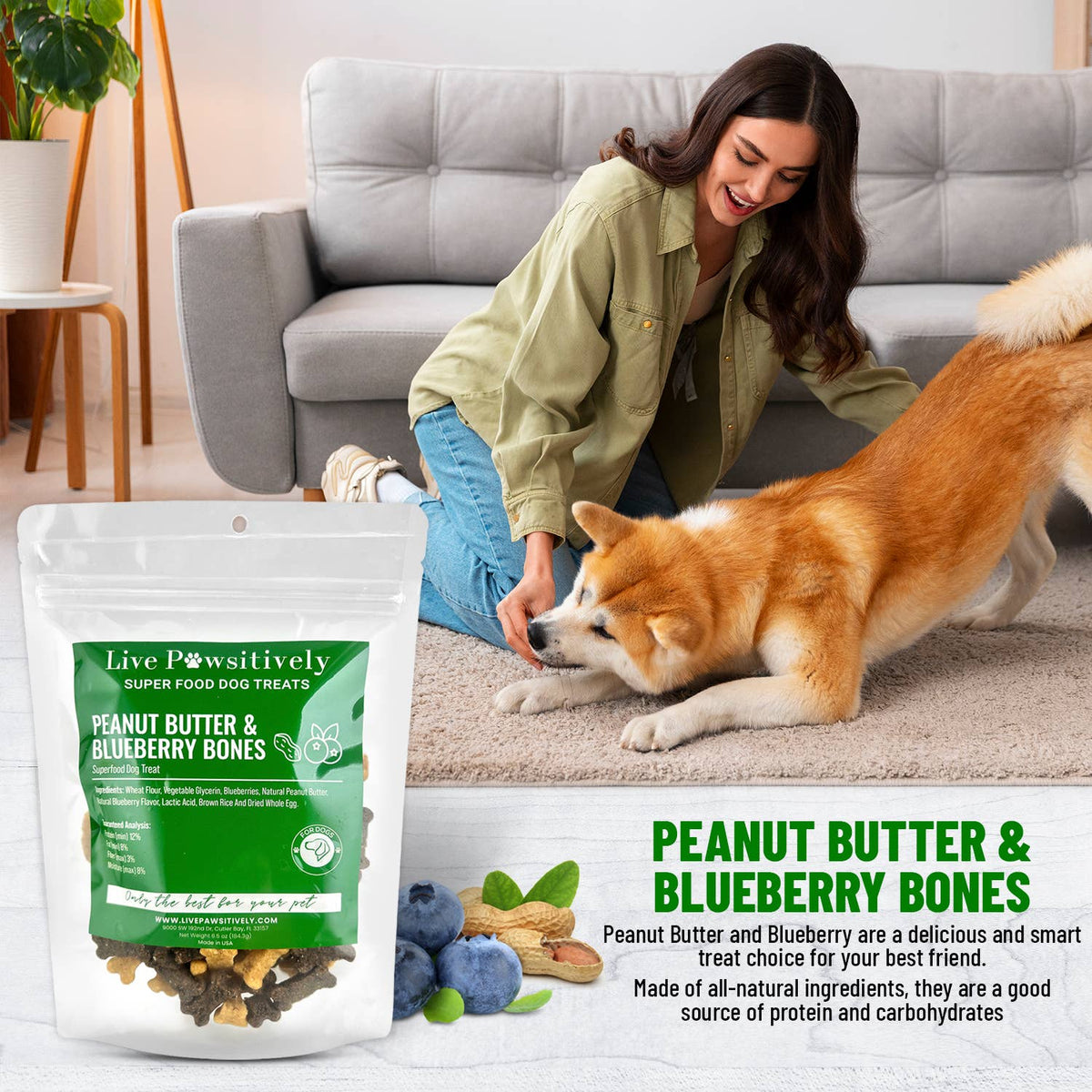 Peanut Butter & Blueberry Bones, Superfood Dog Treat