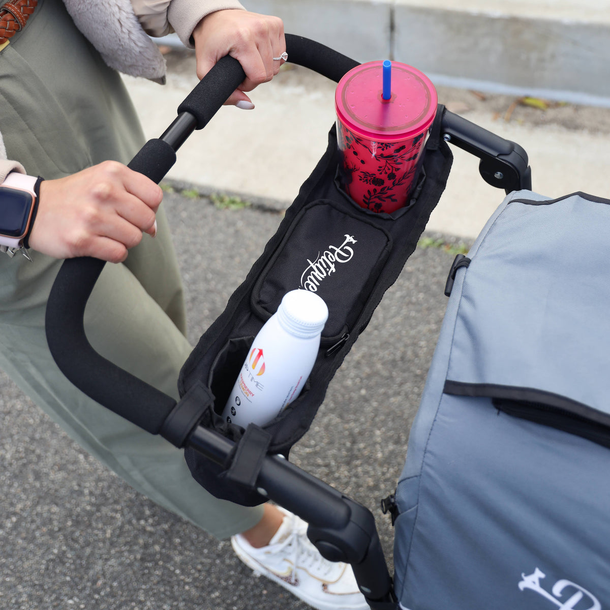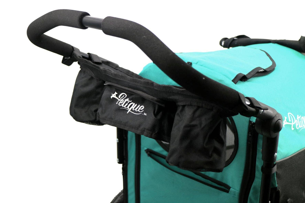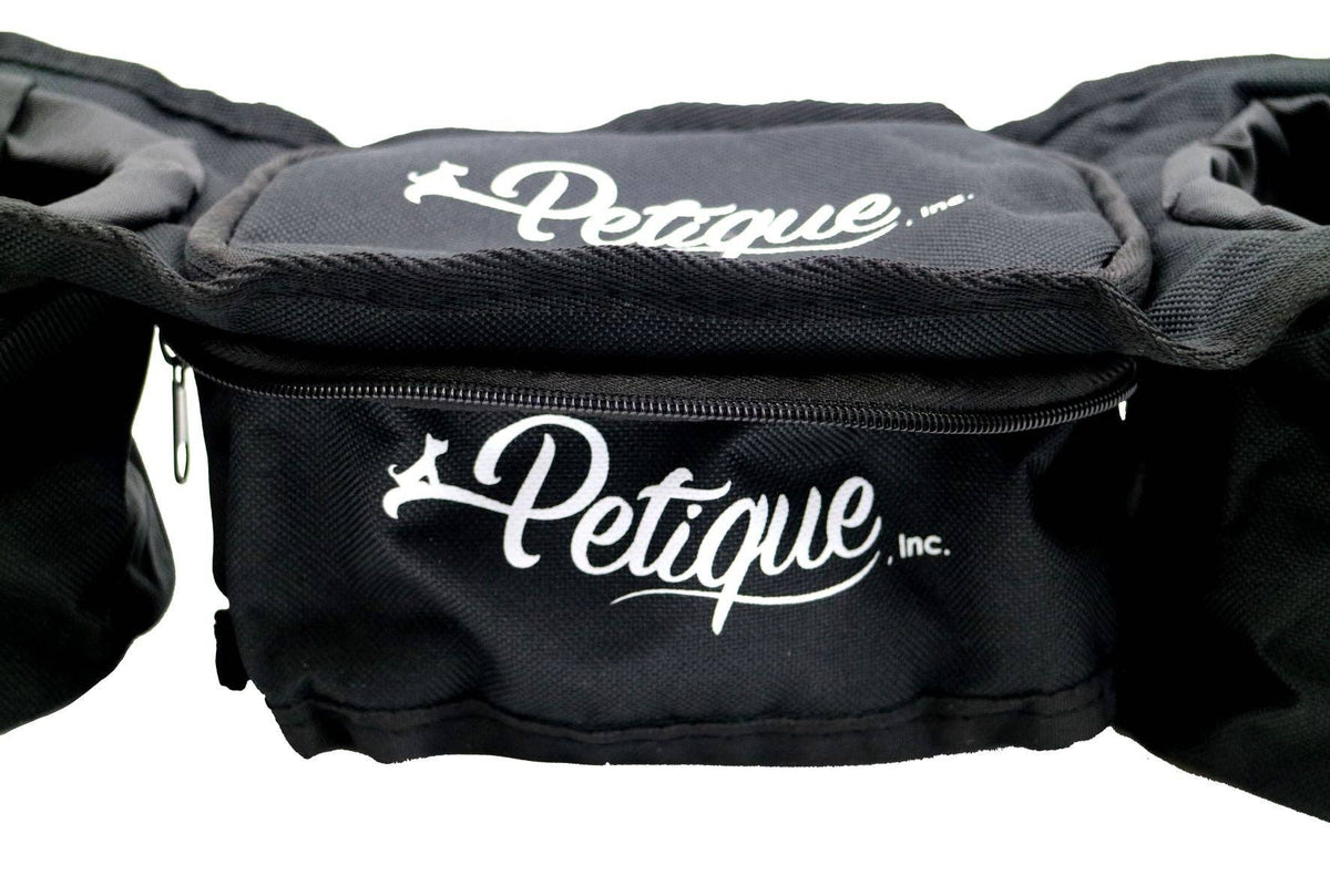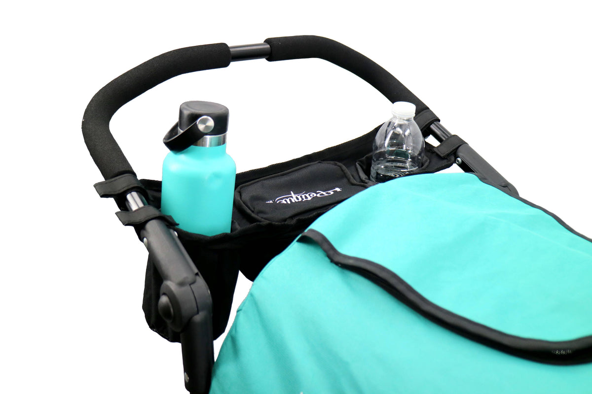 Petique’s Portable Stroller Organizer is a must have accessory that comes with two cup holders and a secure storage pocket to keep your items hands-free and within reach! The portable organizer is designed with heavy-duty material and adjustable Velcro that holds beverages, phones, treats, keys, and more! When the Portable Stroller Organizer is not in use, you can fold it back into a convenient pouch.