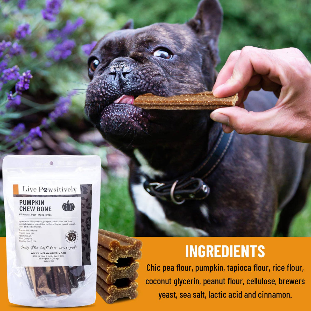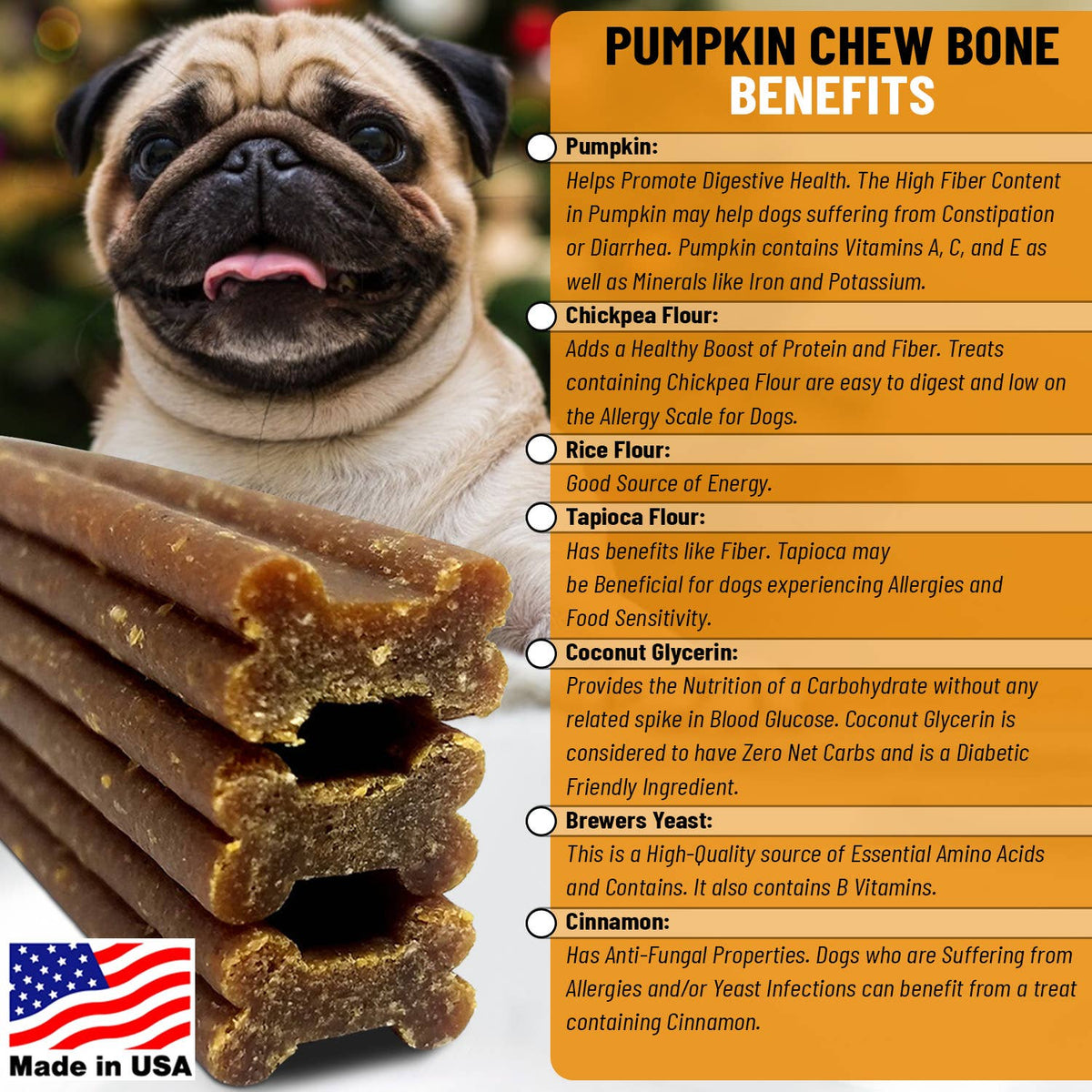 Our Pumpkin Chew Bones are delicious and nutritious for dogs of all sizes. They have a unique texture and can easily be broken or chewed into smaller bites yet are hard to the touch. Pumpkin is a great addition to your dogs health providing many benefits and is a taste that is sure to be enjoyed by your pooch! Our Pumpkin Chew Bones are also great for your dogs dental health.