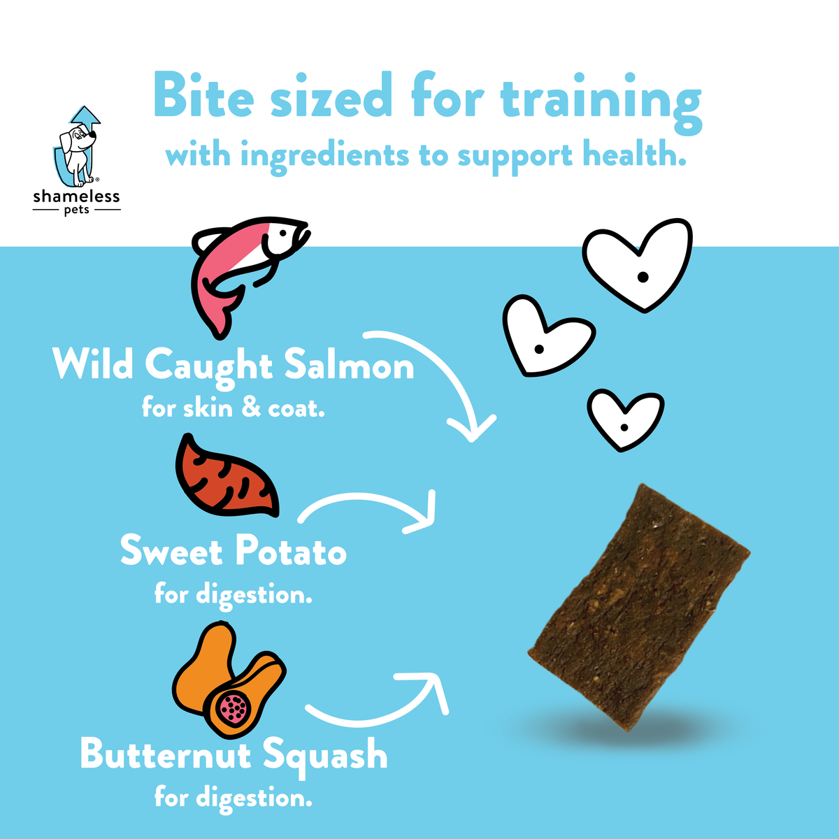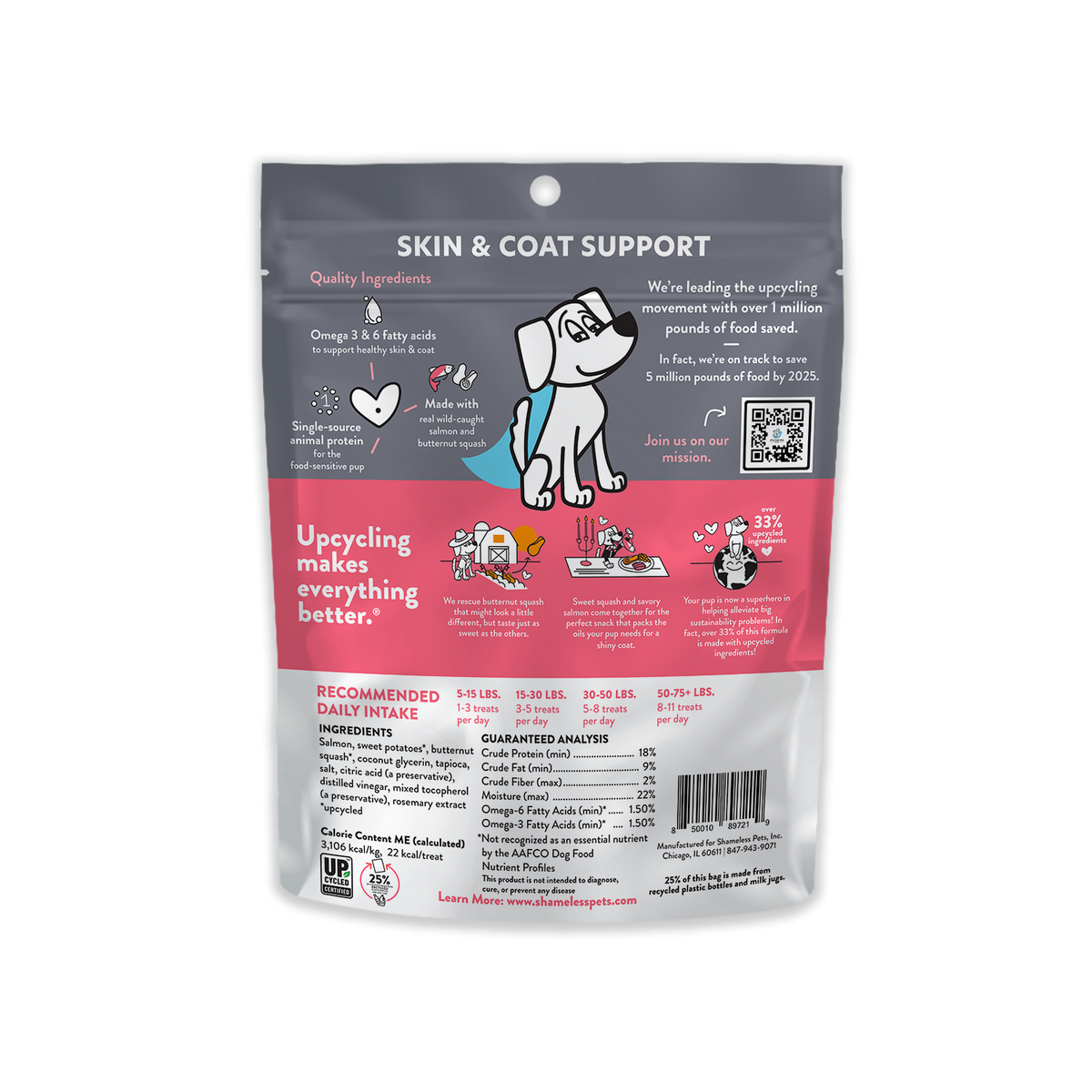 Attributes: Made in the USA, Grain-Free, Corn Free, Soy Free, All Natural, Soft & Chewy, Bite-Sized, Upcycled, Sustainable
