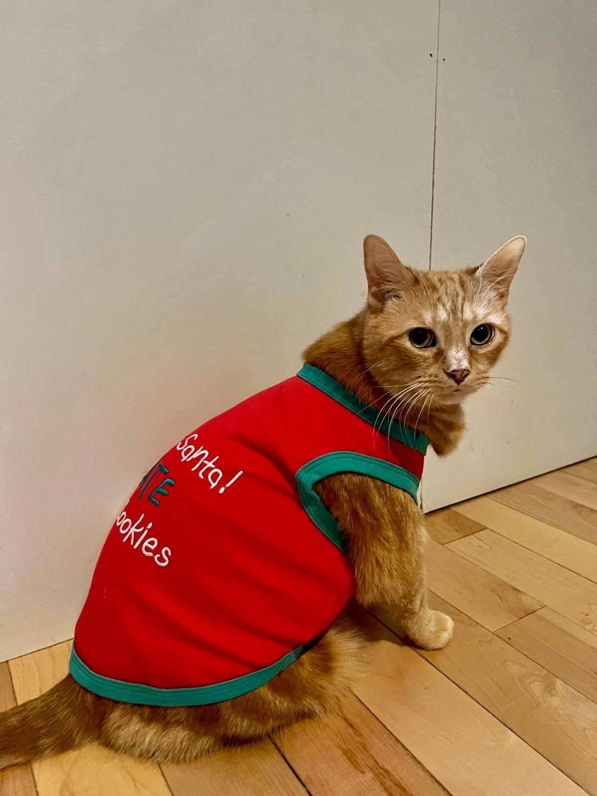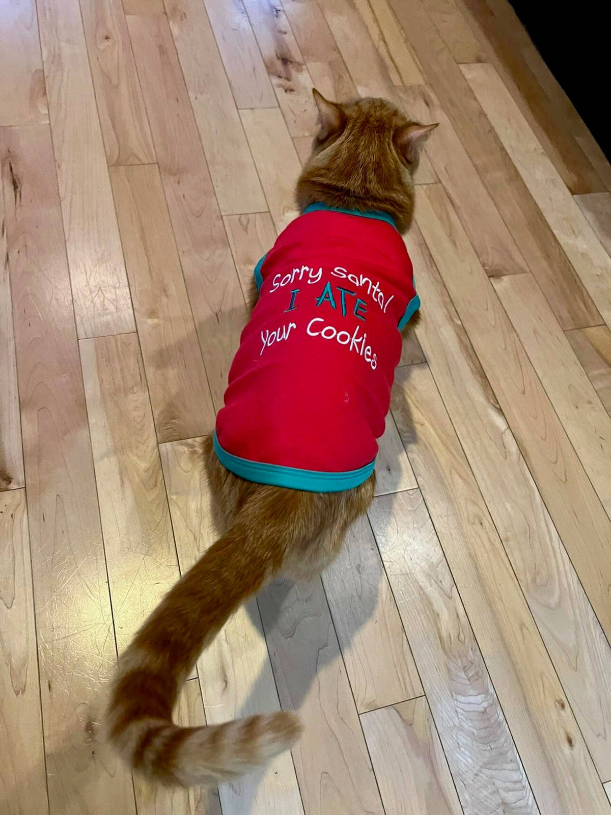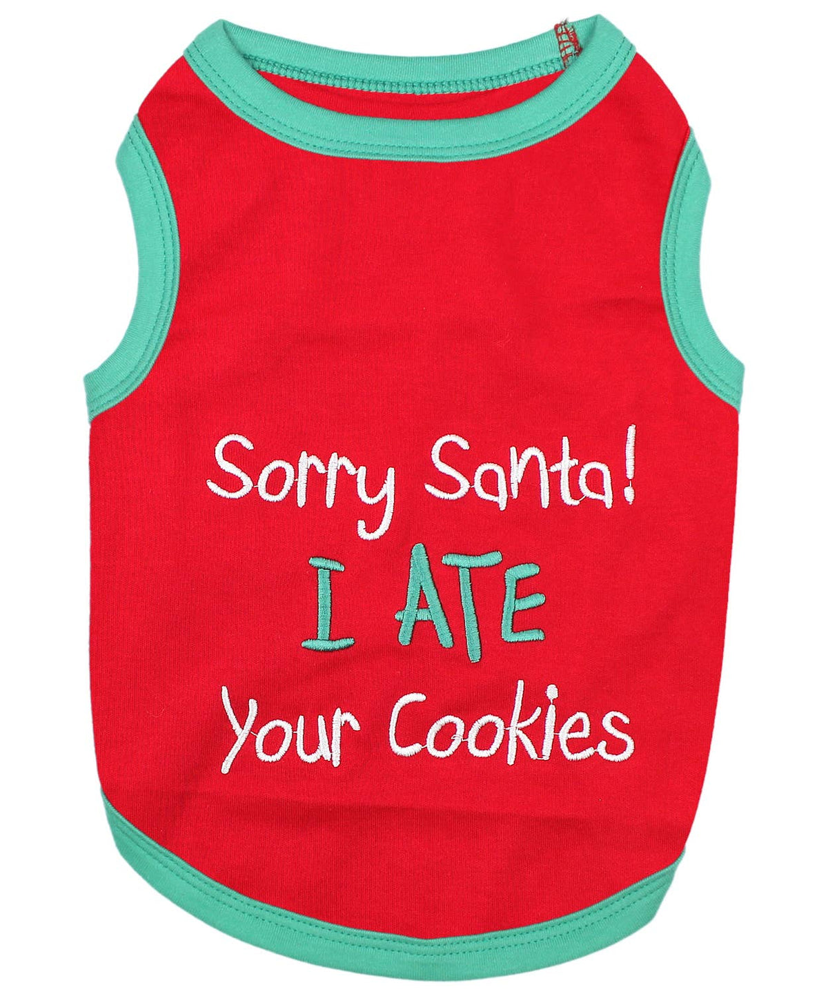 Dress your pup in the Sorry Santa I Ate Your Cookies Dog T-Shirt! This funny pet outfit is perfect for small and large breeds and great for holiday photos.