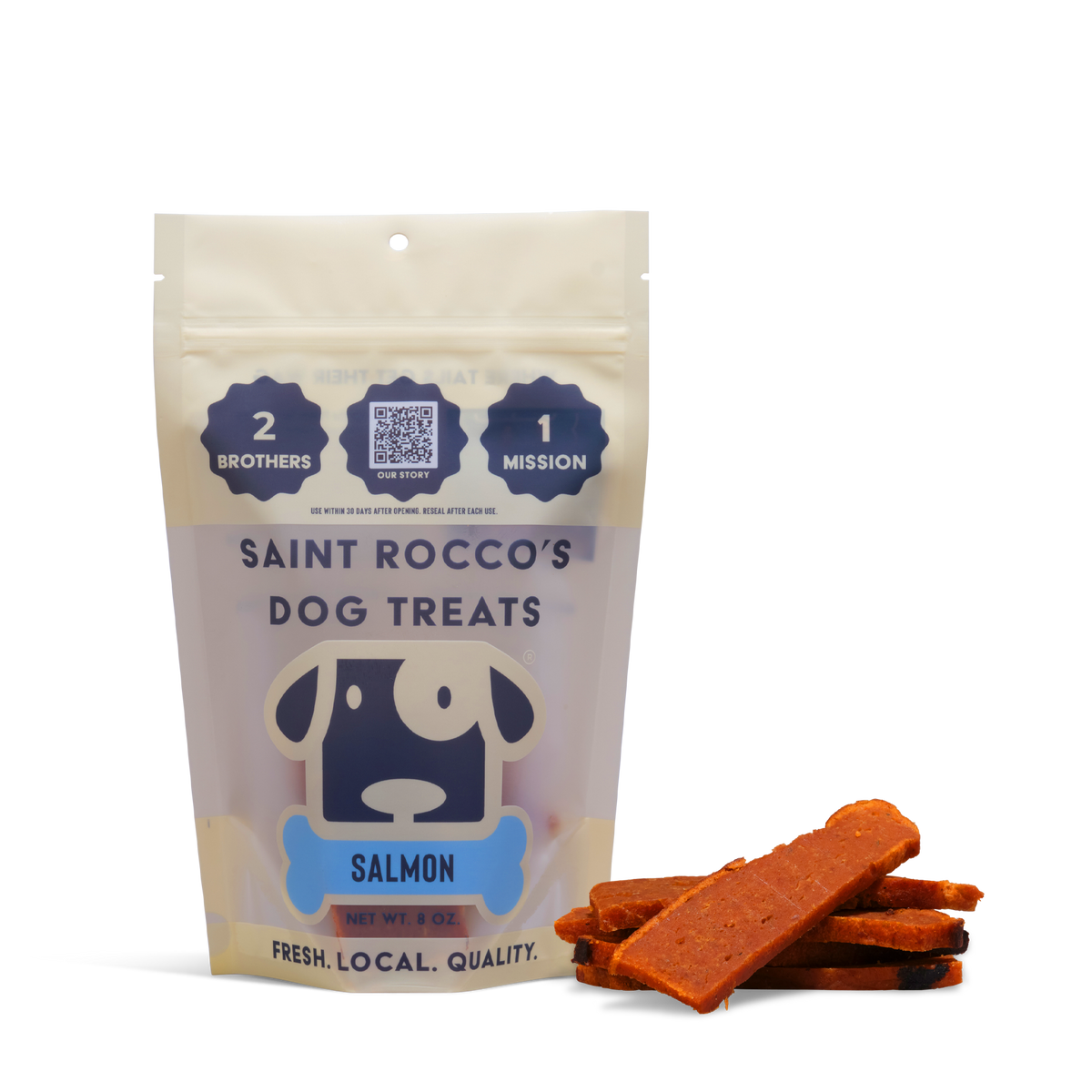 Our Salmon treats are hand-crafted in small batches daily in our Bucks County, PA, gourmet dog kitchen.